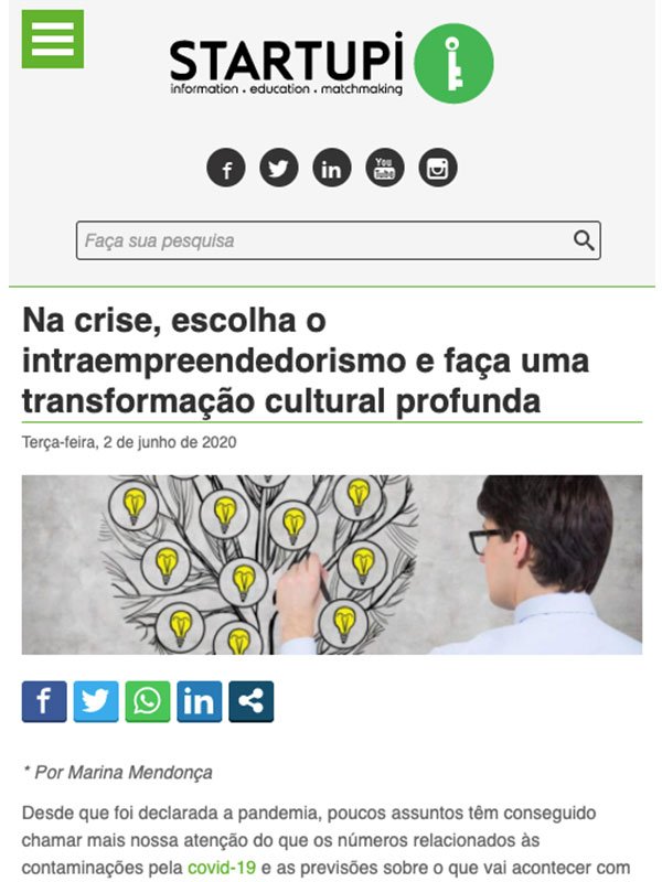 Desde 2012 desenvolvemos centenas de projetos intraempreendedores e milhares de startups, em programas realizados para grandes empresas e instituições que querem inovar.